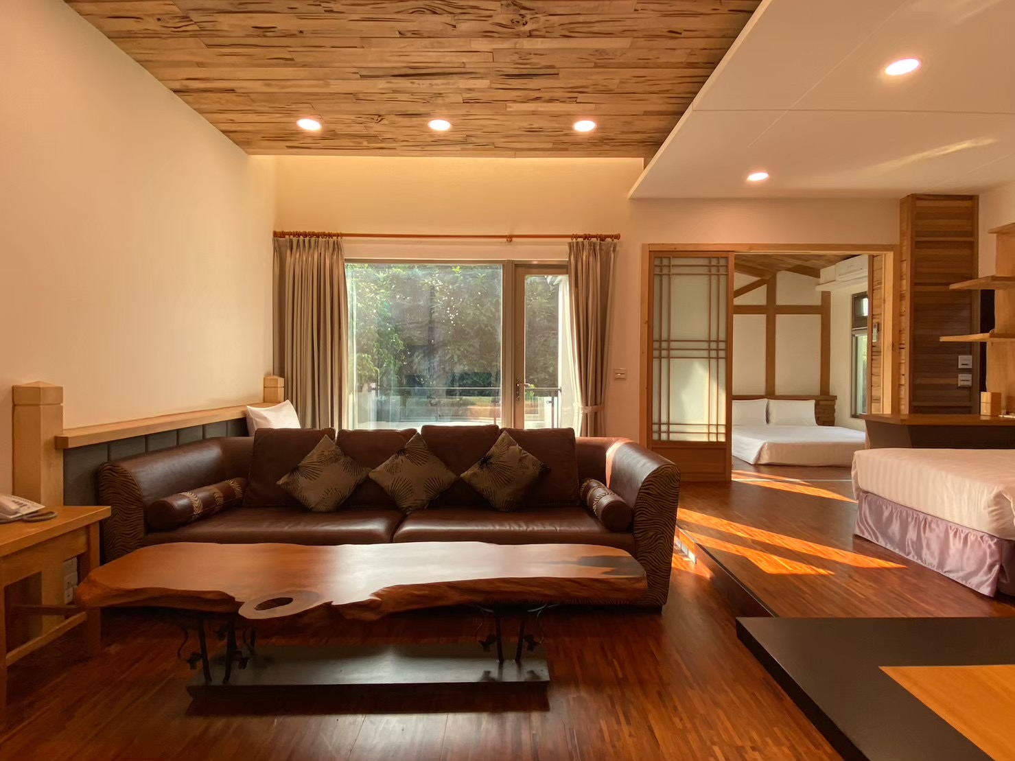檜木房適合小家庭入住,坐在落地窗戶旁,品著咖啡,欣賞美景,完美的組合讓您可完全放鬆,紓解緊張的生活壓力。