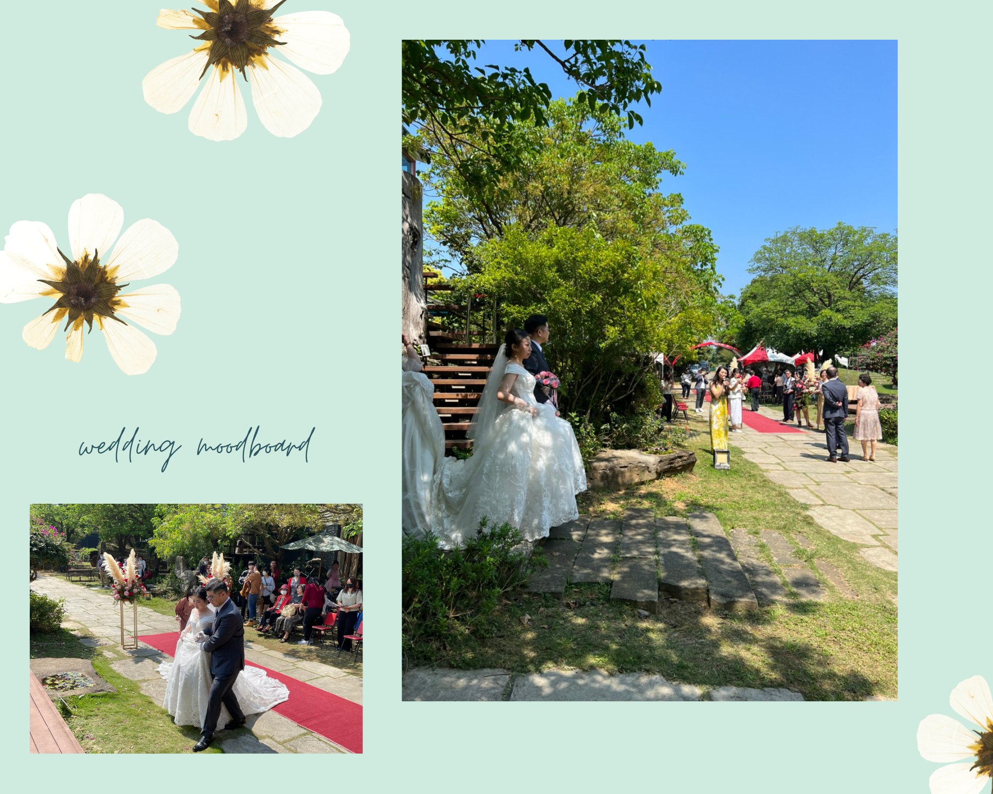 新人熱愛山林樹木 喜歡親近大自然! 所以特別選在「植物節」舉辦婚禮~~ 在五柳園自然純淨的綠地空間~ 感受藍天、白雲和大地~ 走在綠蔭大道的紅毯